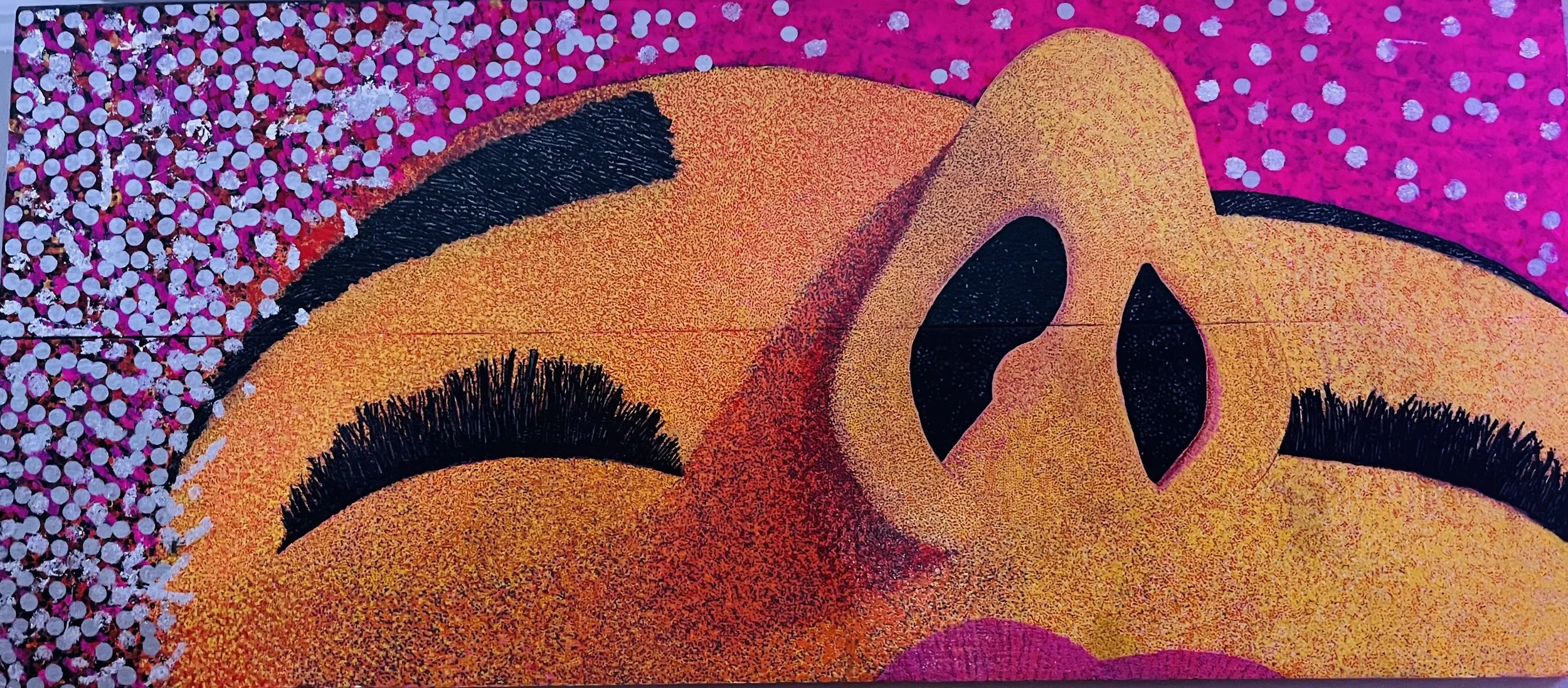 Pee-Wee’s Nostrils (2025) oil & acrylic, silver leaf on scrap wood • 26" x 46" • $1,000.00